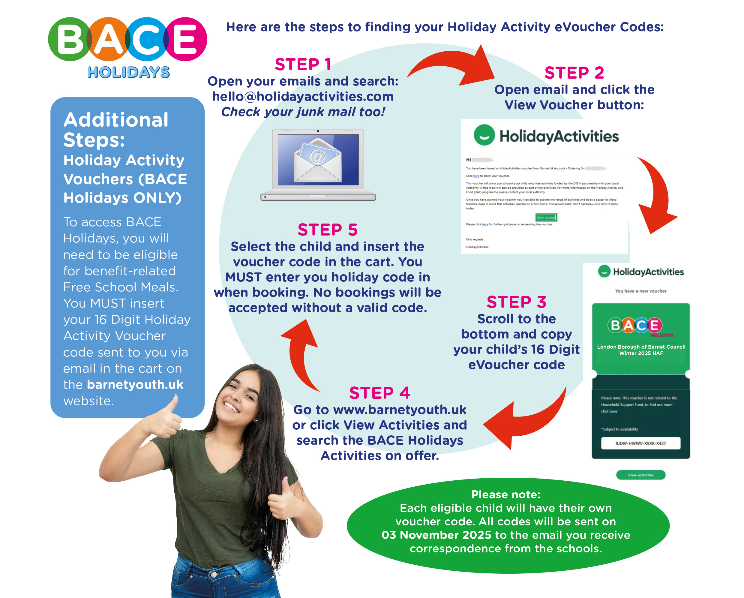 BACE holidays supports children and young people in Reception - Year 11 who receive benefit-related Free School Meals* in the borough of Barnet.